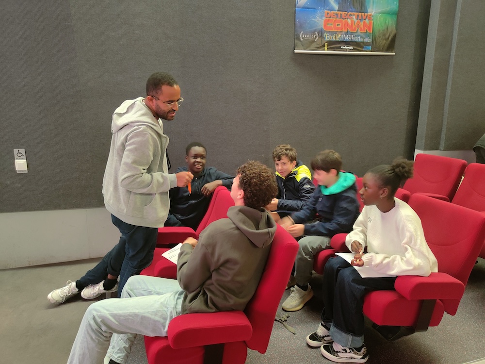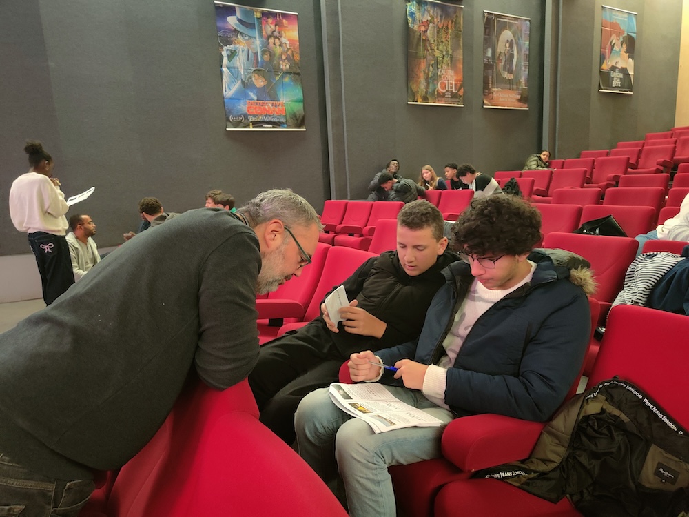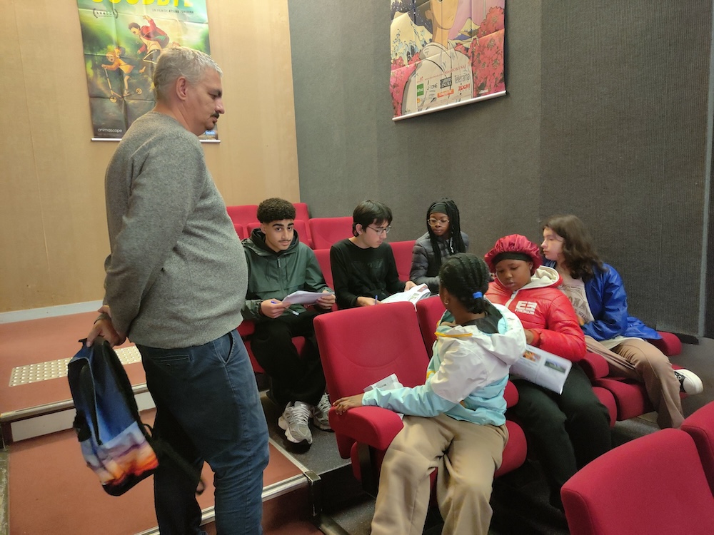 Elian Pirio, le médiateur cinéma qui accompagne les jeunes programmateurs et programmatrices introduit la séance par quelques questions sur ce qu’est un court métrage. Les jeunes participent activement, les films dans leur diversité ne les laissent pas indifférents. C’est donc un film court de moins d’une heure et qui peut concerner tous les genres du cinéma même si l’humour est souvent présent dans les courts métrages.