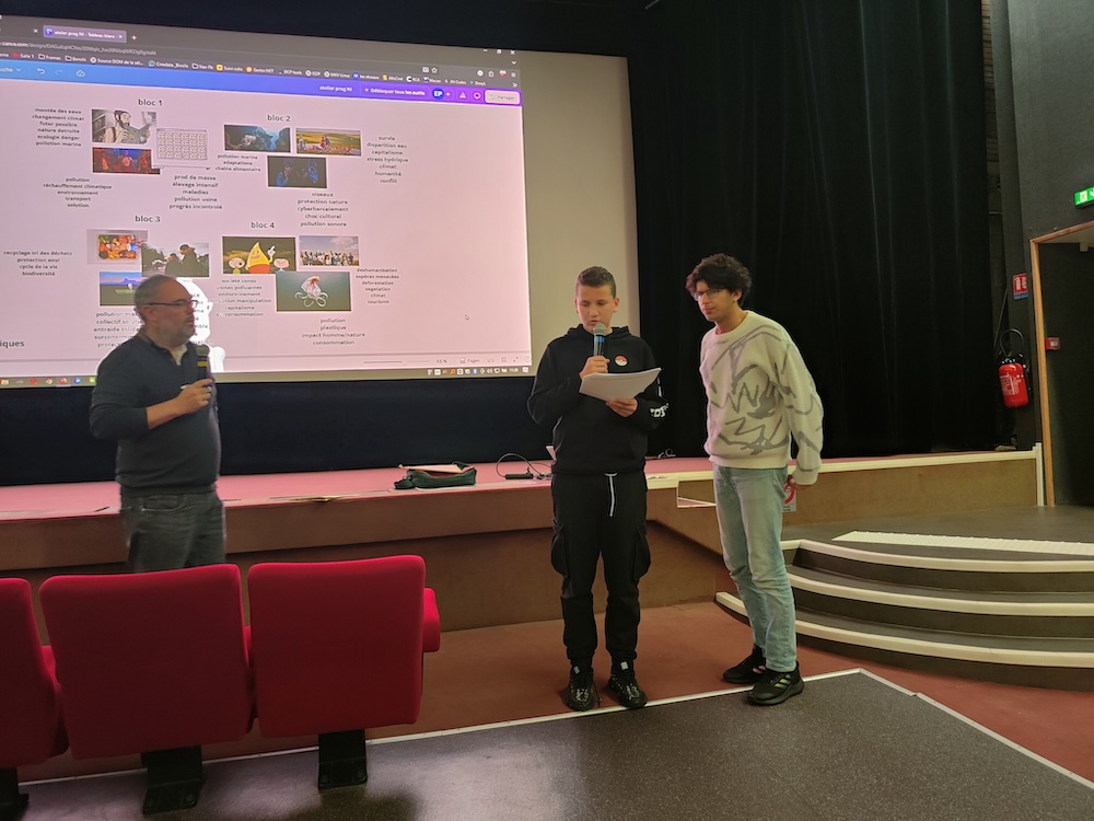 A la sortie de la salle, un des jeunes encadrés par Espoir jeunes dit que s’il n’était pas venu, il n'aurait pas été sensibilisé à l’écologie, il a trouvé ça intéressant et se rend compte que des gestes simples peuvent contribuer à améliorer la situation.