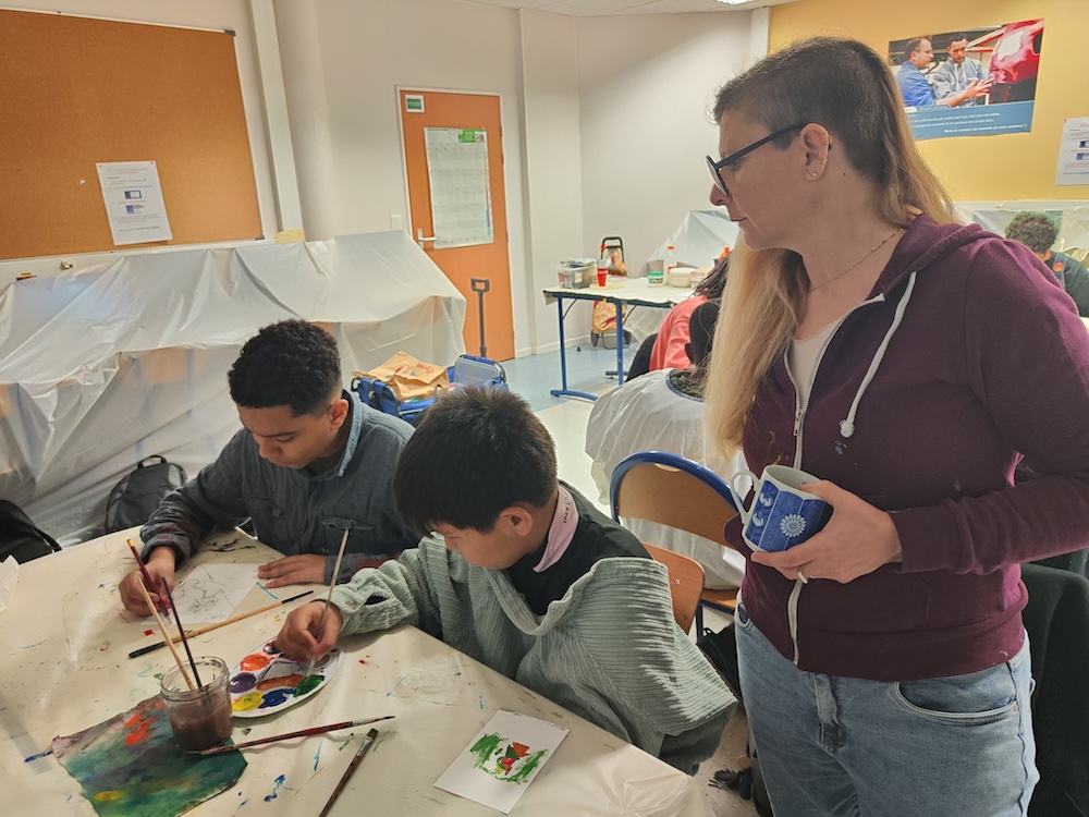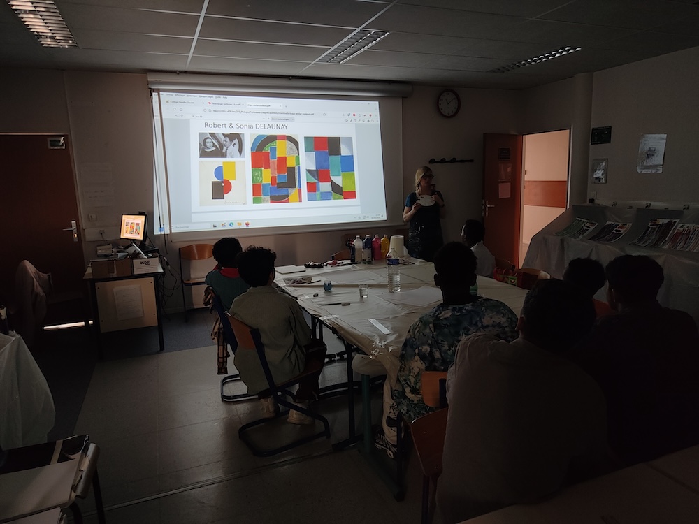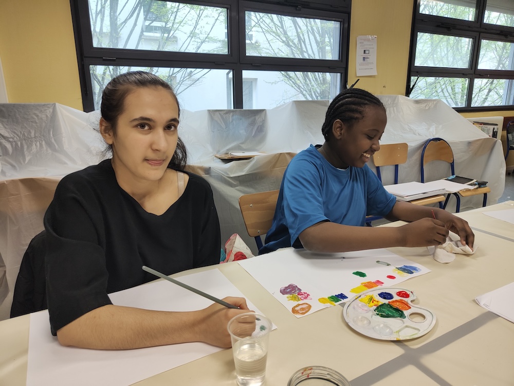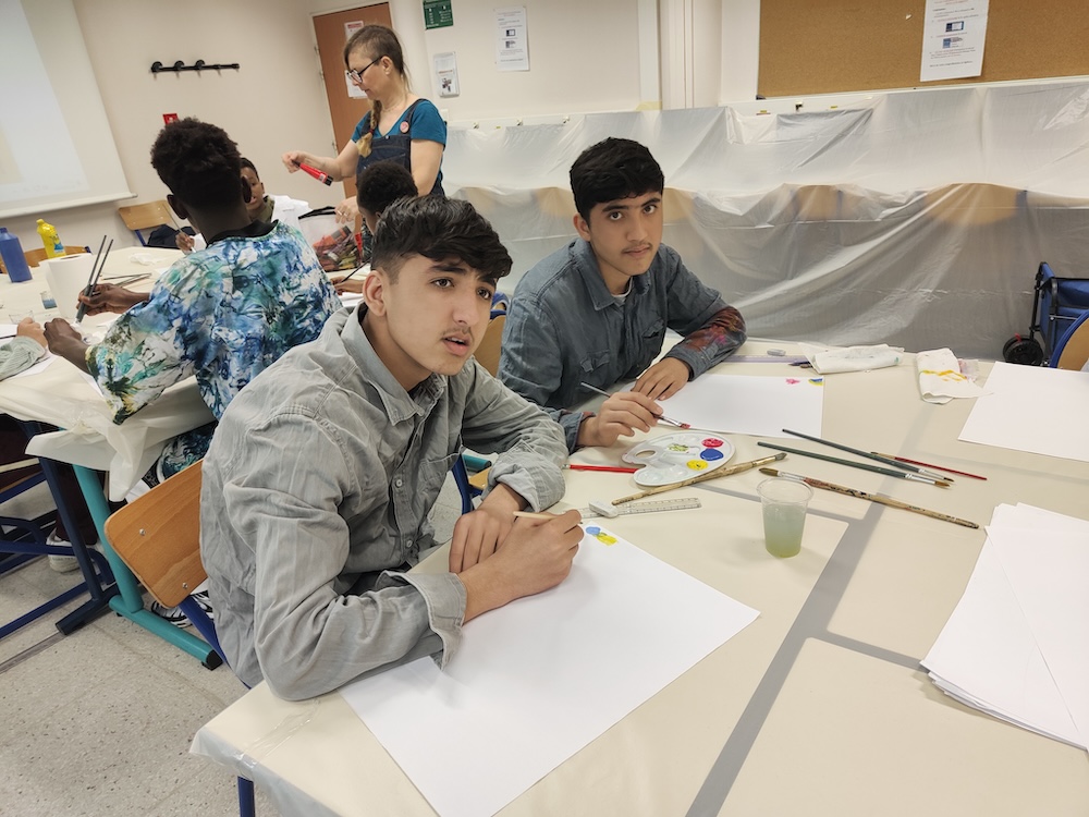 Fin mars, 29 élèves participent à l’atelier arts plastiques de Marie Mellier en deux demi-groupes. Les élèves sont originaires d’Afghanistan, du Sénégal, d’Erythrée, du Soudan du Sud, du Gabon, de Syrie, du Maroc, de Djibouti, de Mauritanie…