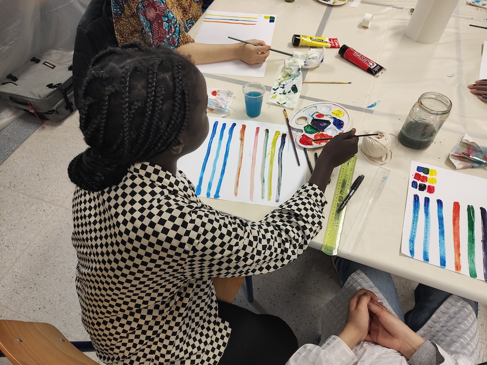 Fin mars, 29 élèves participent à l’atelier arts plastiques de Marie Mellier en deux demi-groupes. Les élèves sont originaires d’Afghanistan, du Sénégal, d’Erythrée, du Soudan du Sud, du Gabon, de Syrie, du Maroc, de Djibouti, de Mauritanie…