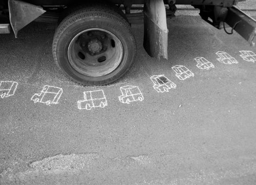 L’exécution est intuitive : le décor urbain interagit sur le déroulement du film : le bitume de la rue devient pellicule !
