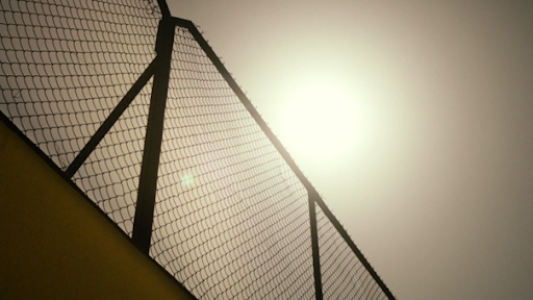 Si les salles de la madrasa créaient un effet d’étouffement, la cour renforce cette impression. Alors que le passage vers l’extérieur pourrait rimer avec respiration, au contraire, l’étau semble se resserrer autour du personnage. Quel que soit l’espace. Car ici le soleil est détourné de sa fonction “positive” pour servir de punition. Wadjda doit rester en plein soleil, subir une chaleur écrasante. Pour s’extraire mentalement de cette prison — trouver une échappatoire — Wadjda semble renouer avec sa liberté intérieure. Peut-être avec son côté créatif, maintenant qu’elle est à l’abri du regard des autres. Car ses pieds filmés en gros plan battent une mesure, mais pas celle des sourates. Un autre thème commence, celui qui, par la suite, sera associé au vélo. La musique communique aux spectateurs ce désir d’évasion. Le motif de la grille et des barreaux aux fenêtres rappelle l’enfermement.