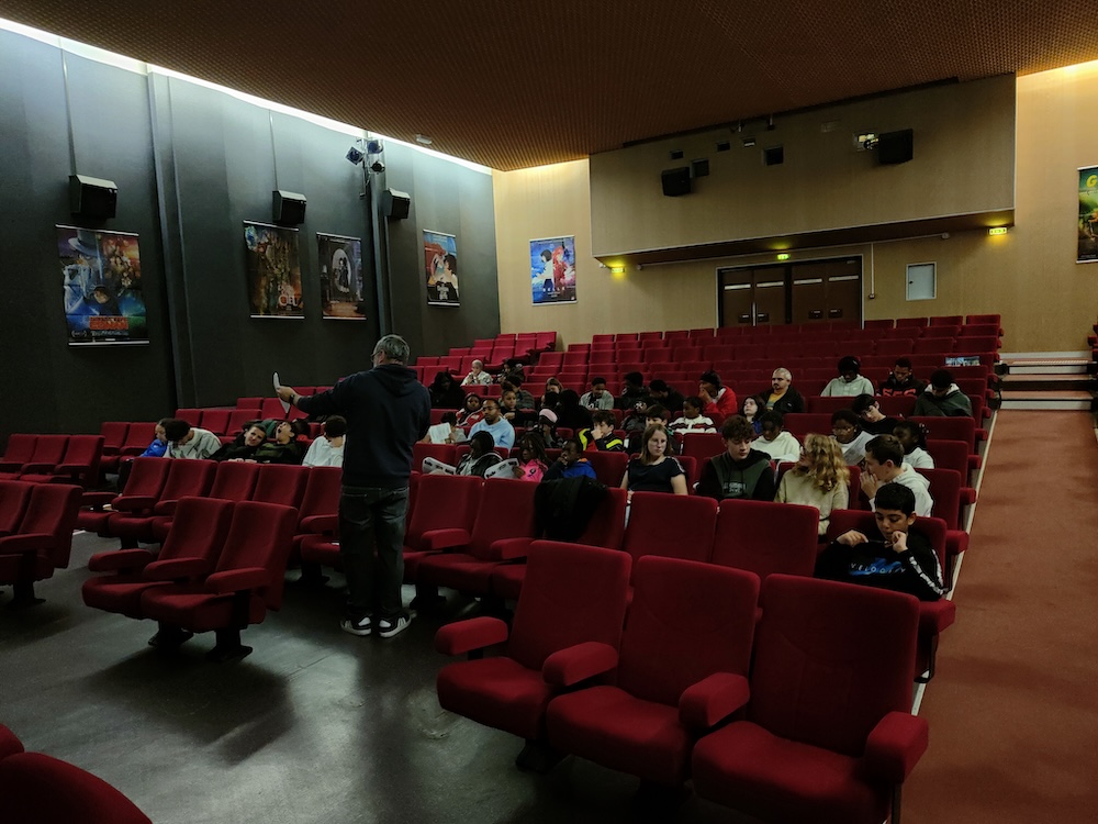Après une brève présentation de Normandie images, Passeurs d’images et du projet, 9 jeunes ont co-animé la séance avec Elian Pirio, présentant ainsi les films qu’ils ont retenus pour cette projection.
