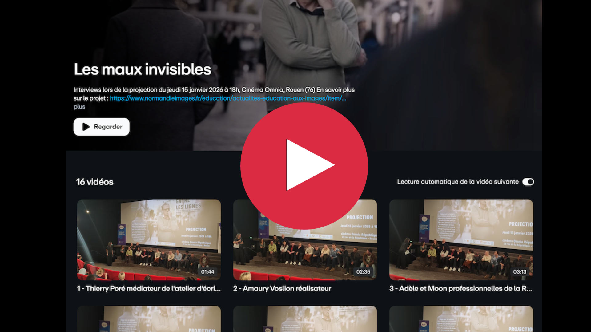 Le 6 janvier, une avant-première en petit comité du film “Entre les lignes” a été organisée dans la salle de projection de Normandie images. Ce film très intime a permis aux résidents de parler de leur quotidien avec le handicap psychique. Il était important qu’ils puissent découvrir leur film avant la projection à l’Omnia devant une salle comble. Le réalisateur Amaury Voslion était là. Certaines personnes s’expriment pour la première fois, avec beaucoup de courage, sur leur handicap dans le film.