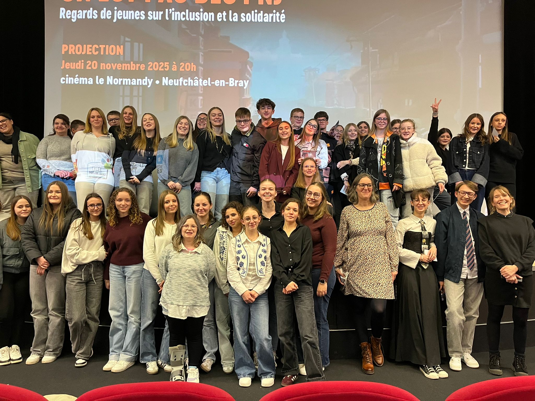 98 personnes étaient présentes à la belle projection organisée au cinéma Normandy de Neufchâtel-en-Bray essentiellement des jeunes du Lycée agricole mais aussi des familles et l’équipe pédagogique.